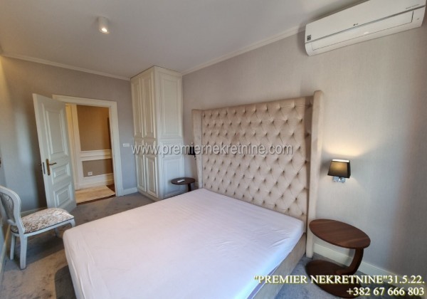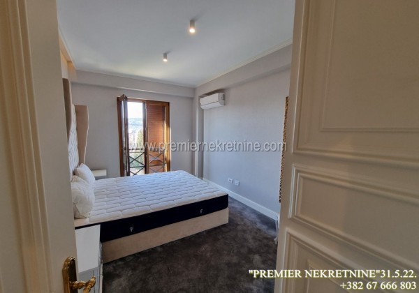 - Izdaje se Trosoban lux namješten, nov stan, površine 105m2, 5. sprat, Centar, ispod Gorice, multi split sistem, video nadzor, alarm, veliko garažno mjesto, 2 kupatila,