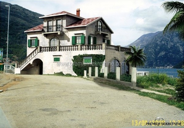 - Three storey villa by the sea, situated on 500m2 plot. On the ground floor which is 160 m2 and 340m2 terrace that meets the water. The house is right next to the beautiful beach. There is a port on the left side of the terrace mooring for boats and the large parking lot in front of the house. Water flow in the villa is in operation, flows into the sea, and does not dry out during the summer time suitable for the cultivation of fresh fish. As you can see in the photos, the view from the terrace is amazing, overlooking the town of Perast on the beach next to the house overlooking the harbor Montenegro.