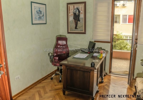 - Квартира в аренду, который зарегистрирован в качестве торговой площади в центре Подгорицы. Пространство идеальные офисы Ya. Полностью меблирована, роскошный и современный. Общая площадь 90м2, на втором этаже. Есть 4 комнаты, ванная комната, кухня, покрытые видеонаблюдения и сигнализации. Она также имеет балкон с видом на главную улицу. Цена 2000 евро в месяц.